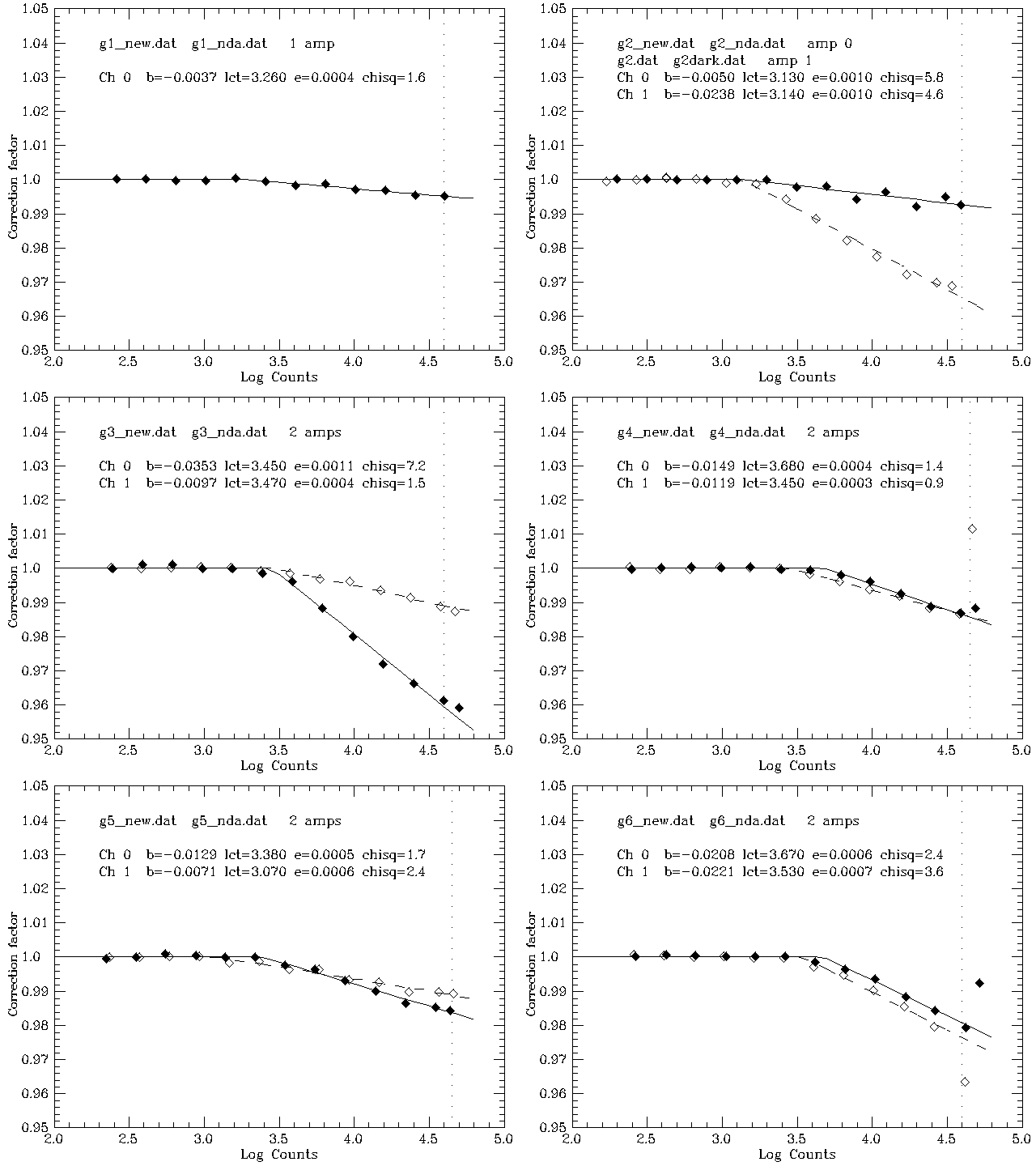 In these plots the filled points belong to amplifier 0, the empty ones to