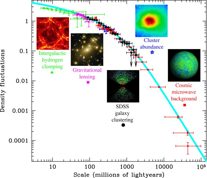 COSMIC CONFIRMATION These numbers provide a powerful confirmation of those reported by the WMAP team. The inclusion of the new SDSS findings helps to improve measurement accuracy, more than halving the uncertainties from WMAP on the cosmic matter density and on the Hubble parameter (the cosmic expansion rate). Moreover, the new measurements agree well with the previous state-of-the-art results that combined WMAP with the Anglo-Australian 2dF galaxy redshift survey. "Different galaxies, different instruments, different people and different analysis - but the results agree", says Max Tegmark from the University of Pennsylvania, first author on the two papers. "Extraordinary claims require extraordinary evidence", Tegmark says, "but we now have extraordinary evidence for dark matter and dark energy and have to take them seriously no matter how disturbing they seem."